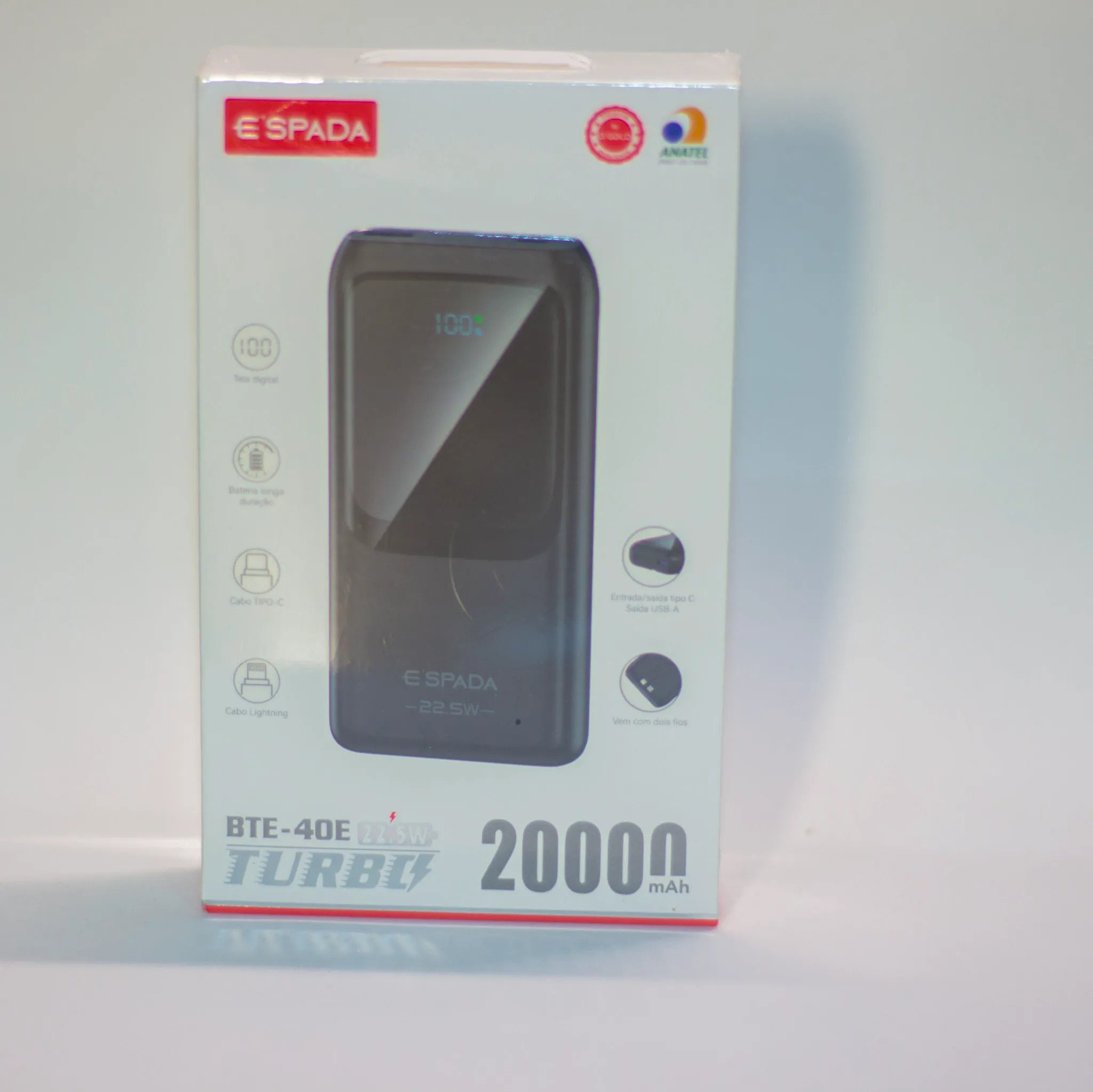 Possui um tipo de conector USB, micro USB, USB tipo-c, lightning./ Inclui cabo./ Vem com dois fios/ bateria longa / tela digital